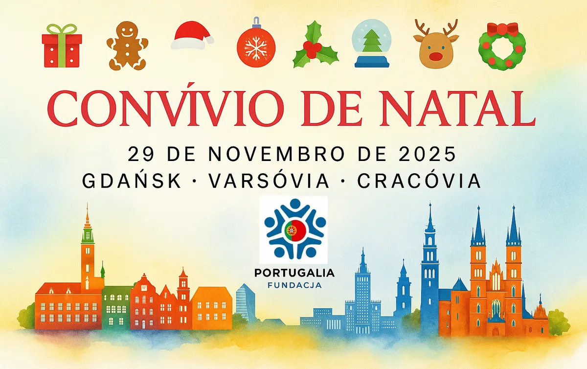 Junta-te ao convívio de Natal da comunidade portuguesa na Polónia, que este ano acontecerá em simultâneo nas cidades de Gdańsk, Varsóvia e Cracóvia, no sábado, 29 de Novembro de 2025.